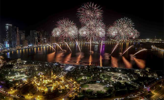 മൂന്ന് ഇന്ററാക്ടീവ് ഷോകള്, അല് മജാസ് വാട്ടര്ഫ്രണ്ടില് രണ്ട് ഷോകള്, യൂണിവേഴ്സിറ്റി ഹാളിന്റെ മുന്വശത്ത് പ്രത്യേക ഷോകളും ഉണ്ടായിരിക്കും. വീഡിയോ മാപ്പിങ് സാങ്കേതികവിദ്യയെ വിര്ച്വല് റിയാലിറ്റിയുമായി സമന്വയിപ്പിച്ച് ലോകമെമ്പാടുമുള്ള അത്ഭുതങ്ങളായിരിക്കും യൂണിവേഴ്സിറ്റി ഹാളിലെ ഷോയിലുണ്ടാവുക. തത്സമയ ഷോകളായിരിക്കും അല് മജാസ് വാട്ടര്ഫ്രണ്ടില് നടക്കുക. എല്ലാ ദിവസവും രാത്രി ഒമ്പതിന് ലൈറ്റ് ഷോകളും പ്രത്യേക കരിമരുന്ന് പ്രയോഗവും ഉണ്ടായിരിക്കും.