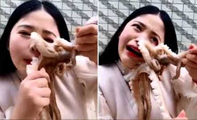 ഭക്ഷണമാവുന്നതില് നിന്ന് രക്ഷപെടാന് യുവതിയുടെ മുഖത്ത് അള്ളിപ്പിടിക്കുന്നതും വേദന കൊണ്ട് യുവതി കരയുന്നതുമാണ് വീഡിയോയിലുള്ളത്. അമ്പത് സെക്കന്റ് മാത്രം ദൈര്ഘ്യമുള്ളതാണ് വീഡിയോ. വീഡിയോയുടെ തുടക്കത്തില് തീരെ പരിഭ്രാന്തിയില്ലാതെ ആണ് യുവതി പ്രത്യക്ഷപ്പെടുന്നത്. എന്നാല് സെക്കന്റുകള്ക്കകം കാര്യങ്ങള് കൈവിട്ടുപോവുകയായിരുന്നു.