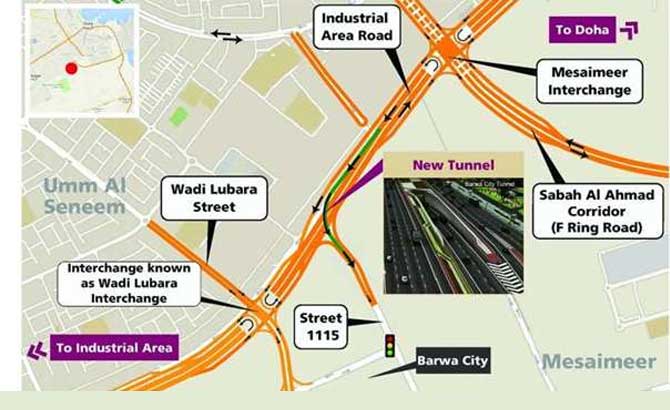 ഇന്ഡസ്ട്രിയല് ഏരിയ റോഡിനേയും ബര്വ സിറ്റിയേയും നേരിട്ടു ബന്ധിപ്പിക്കുന്ന പുതിയ തുരങ്ക പാത ഗതാഗതത്തിനായി തുറന്നു. മിസൈമിര് ഇന്റര്ചേഞ്ചിനും ഇന്ഡസ്ട്രിയല് ഏരിയ റോഡിലെ വാദി ലുബാറ ഇന്റര്ചേഞ്ചിനും മദ്ധ്യേയാണ് പുതിയ പാത. രണ്ടു വരി തുരങ്ക പാതക്ക് 670 മീറ്ററാണ് നീളം. പൊതുമരാമത്ത് വകുപ്പായ അഷ്ഘാലാണ് പുതിയ പാത ഗതാഗതത്തിനു തുറന്നത്.
